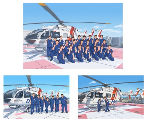 さて、4月3日(金)に、毎年恒例の当院屋上にあるヘリポートでドクターヘリと一緒に集合写真を撮りました。